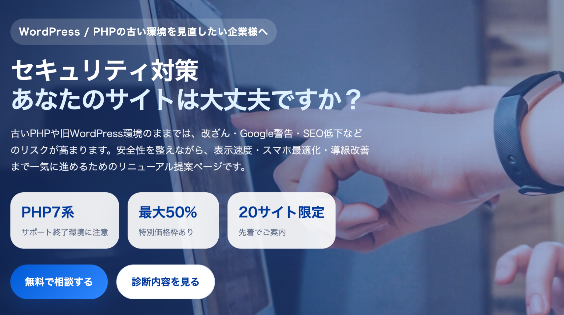 スマホ対応や直感的な操作ができないと、アクセスがあっても離脱率が高くなります。更新されない情報で信頼を失っていませんか?